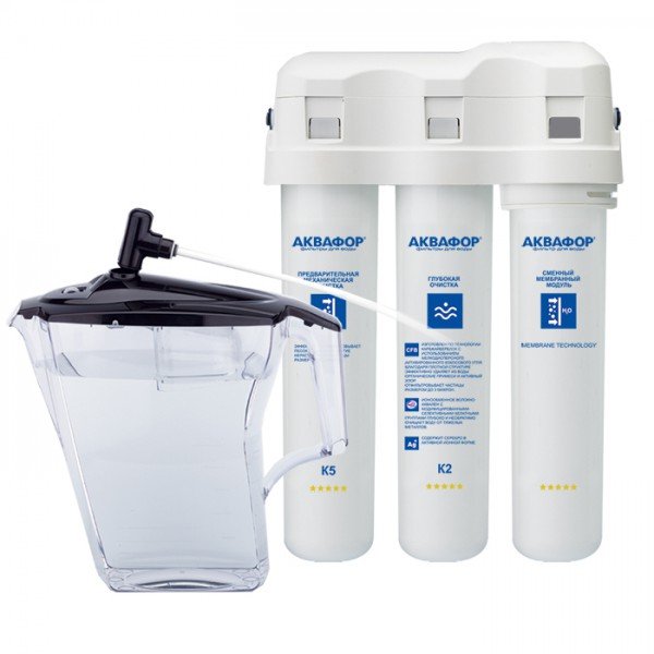 Обратноосмотические фильтры используются для абсолютной защиты от накипи, т.к. полностью устраняют соли жесткости из воды.даЧисло ступеней очисткиКартриджи последовательно очищают воду и от видимых примесей, и от растворенных. Первый картридж задерживает более крупные частицы, а каждый последующий - более мелкие. Чем больше ступеней - тем лучше фильтр очистит воду: поймает более мелкие видимые частицы ржавчины, песка и ила, успеет захватить из воды максимум растворенных примесей - хлора, нитратов, тяжелых металлов и других.3МинерализацияПроисходит после финишной очистки воды. Необходима прежде всего в фильтре обратного осмоса, поскольку такой фильтр полностью устраняет из воды все примеси, в том числе минералы. Минералы добавляются в оптимальной концентрации - для пользы и привычного вкуса воды.даПостфильтрацияФинальный этап очистки воды: картриджи постфильтрации удаляют самые мелкие механические частицы и кондиционируют воду, придавая ей более приятный вкус.нетНакопительная емкостьОбычно нужна в фильтрах обратного осмоса. Глубокая фильтрация требует времени. Чтобы Вам не приходилось ждать, пока вода наберется в чайник или кастрюлю, почти во всех моделях используется накопительный бак для чистой воды или другая емкость. В стандартном фильтре обратного осмоса под мойку воды в баке достаточно для семьи из 5-6 человек.даФильтрующий модуль в комплектедаОтдельный краннетДавление в водопроводе не более, атмМаксимальное давление воды на входе в систему, при котором возможна стабильная работа фильтра.6,5Ширина, смОбратите внимание на габариты фильтра, и измерьте, сколько свободного пространства в предполагаемом месте установки.26,5Глубина, смОбратите внимание на габариты фильтра, и измерьте, сколько свободного пространства в предполагаемом месте установки.10,0Защита корпуса от гидроударовдаИсходная водаЖесткая вода – вода с избытком минеральных солей. От нее появляется накипь в чайнике, известковый налет на сантехнике и разводы на посуде. Мягкая вода – та, в которой мало минеральных солей. Нет накипи в чайнике и разводов на посуде. Фильтры для мутной воды и фильтры от ржавчины, как правило, имеют несколько стадий очистки и дополнительный полипропиленовый картридж. Он задерживает механические частицы ила, песка и ржавчины и защищает картриджи более глубокой очистки.любаяУстраняет мутностьМутность водопроводной воды может говорить о том, что в ней много мелких механических частиц. Важно, чтобы в фильтре был установлен дополнительные картридж механической предфильтрации (полипропиленовый) - он продлит жизнь остальным картриджам более тонкой очистки.даУстраняет ржавчину, бурый осадокЛюбой фильтр под мойку удалит из воды крупные и мелкие частицы ржавчины. Некоторые фильтры имеют повышенный ресурс по железу: они дольше служат в такой воде, поскольку лучше подходят для удаления из воды железа и механических частиц ржавчины.даЗащита от бактерийВсе проточные фильтры в той или иной степени защищают от бактерий. Например, добавление серебра препятствует их размножению. Это стандартная степень защиты. Если в семье есть дети, пожилые люди или аллергики, воду рекомендуется обеззараживать, то есть полностью удалять микроорганизмы. Повышенную защиту от бактерий дают фильтры с половолоконной мембраной. Это пучок трубок с 